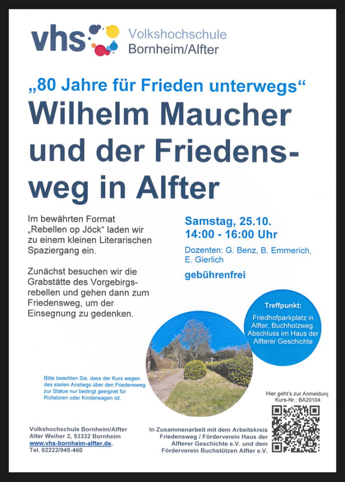 „80 Jahre für Frieden unterwegs“ – Wilhelm Maucher und der Friedensweg in Alfter